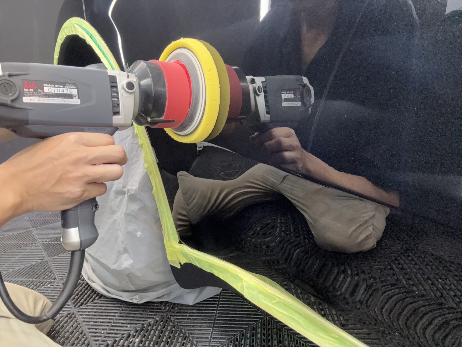 しっかりと養生することで、研磨をしない部分の保護や隙間への研磨剤の侵入を防ぎ、
